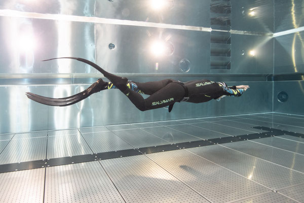 FreeDiving-Training im Pool für 3Minunten unter Wasser und eine Beckenlänge von 50m tauchend gleitend. Tony weihte mich ins Freediving sehr exakt ein.